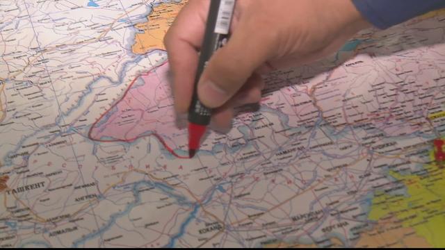 A river canal network stretches across the Fergana Valley which is shared by Kyrgyzstan, Uzbekistan and Tajikistan.