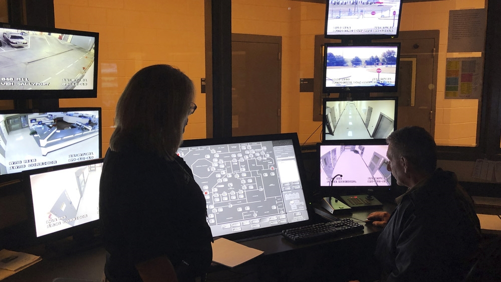 On a tour of the sprawling jail on a recent morning, the sheriff pointed out a central command system that allows staff to monitor inmates and remotely open their cells. Mangum also stopped at a videoconferencing system that lets inmates talk to family members from their cellblocks.
