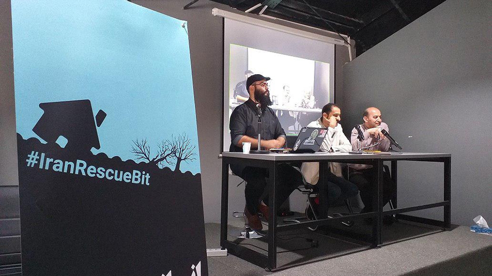 Hamed Salehi, left, at the launch of IranRescueBit, an online platform for aid donations made in cryptocurrencies [File: courtesy Samaneh Fathabadi/Al Jazeera]