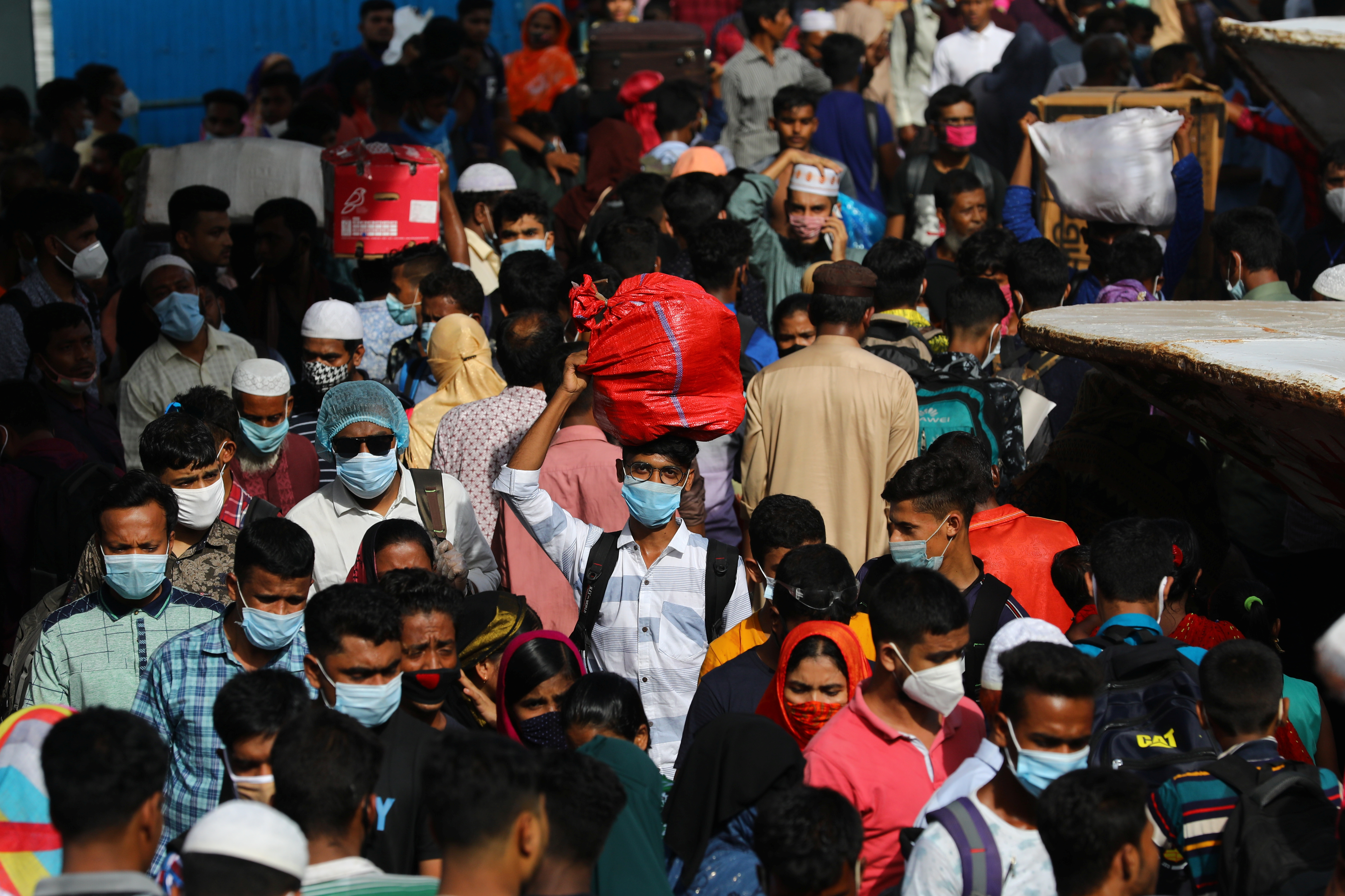 Migrant people gather at the Sadarghat Ferry Port to go home to celebrate Eid al-Adha, amid the coronavirus outbreak, in Dhaka, Bangladesh, where the pandemic dealt a heavy blow to the job market [File: Mohammad Ponir Hossain/Reuters]