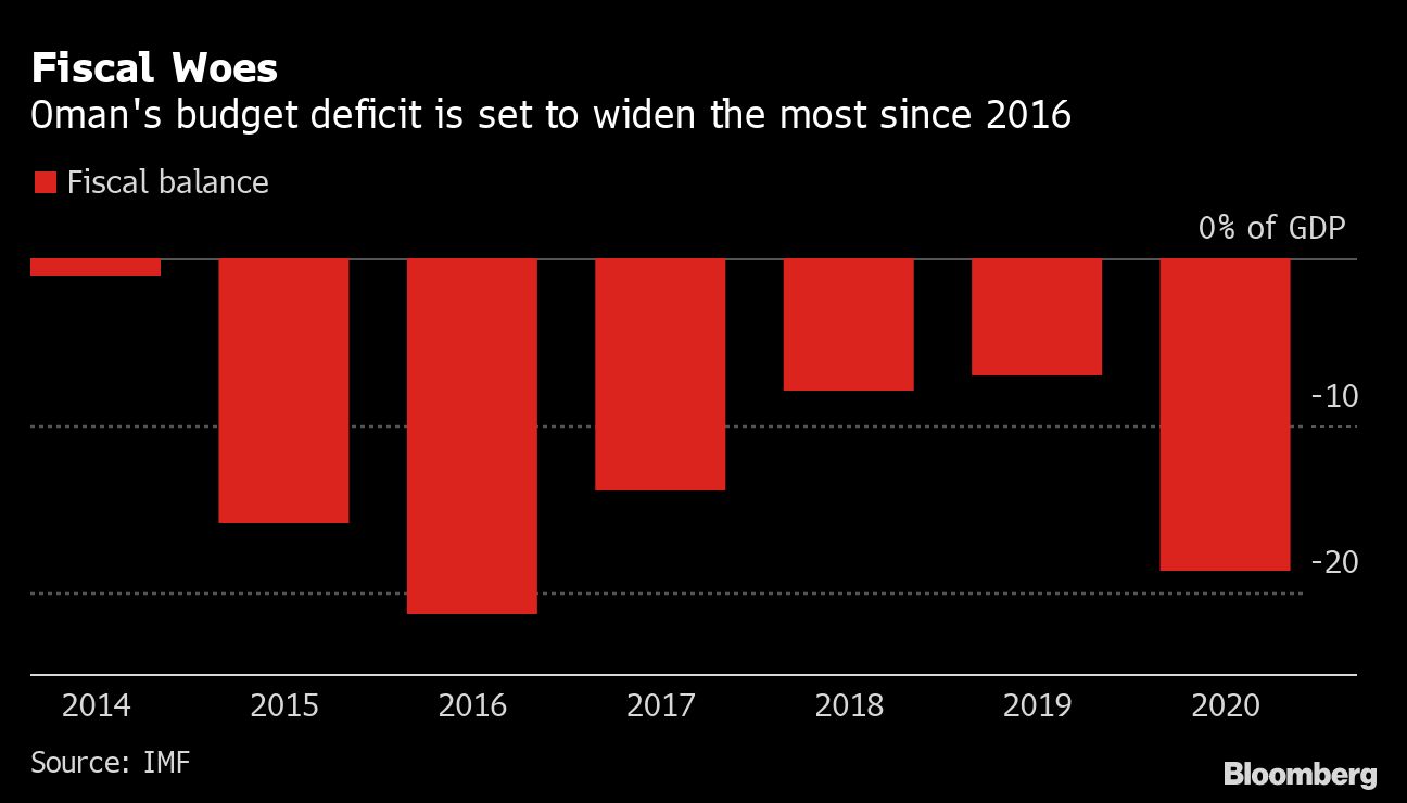 The International Monetary Fund sees Oman’s economy shrinking 10% this year, the steepest contraction among peers.