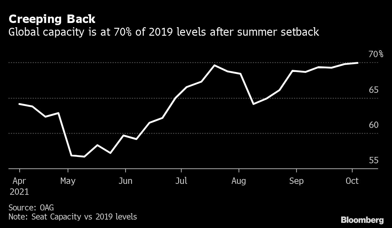 Air cargo is another bright spot, with demand this year expected to be 8% above 2019 levels, increasing to more than 13% higher in 2022 amid a surge in shipments from a global restocking and the shift to online purchasing.