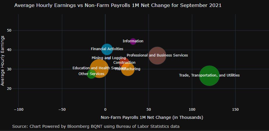 Meantime, average hourly earnings advanced 0.6% in September, the strongest monthly advance since April. The increase highlights how companies are trying to attract workers by offering higher wages. The average hourly workweek increased to a four-month high of 34.8 hours.