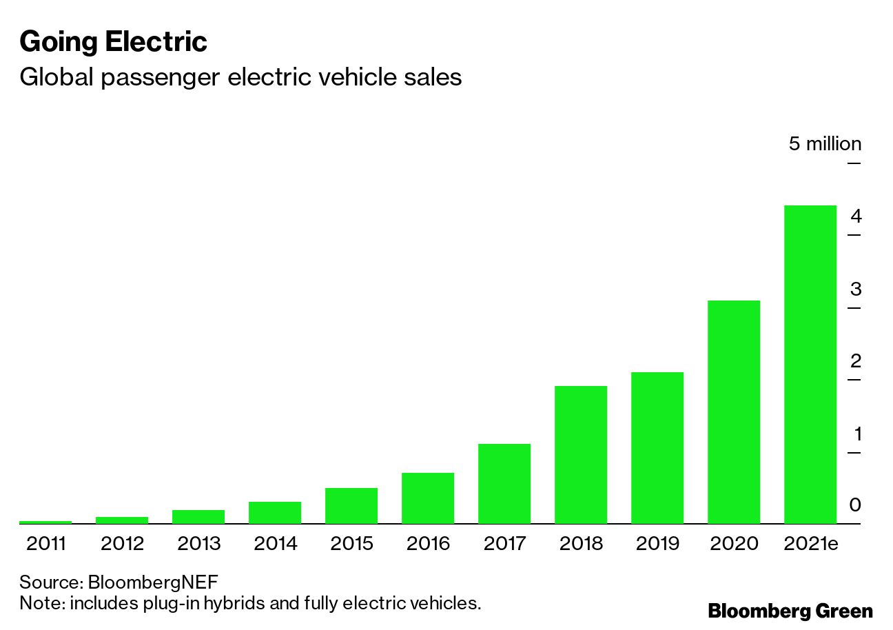The world’s metals producers stand to benefit from increasing electrification, and not just in the transport sector. BloombergNEF estimates that global copper demand in both the clean power and the clean transport sectors will double in the next decades, to almost 5 million tons per year. Copper demand this year is expected to be about 24 million tons, so that jump would be a material increase.
