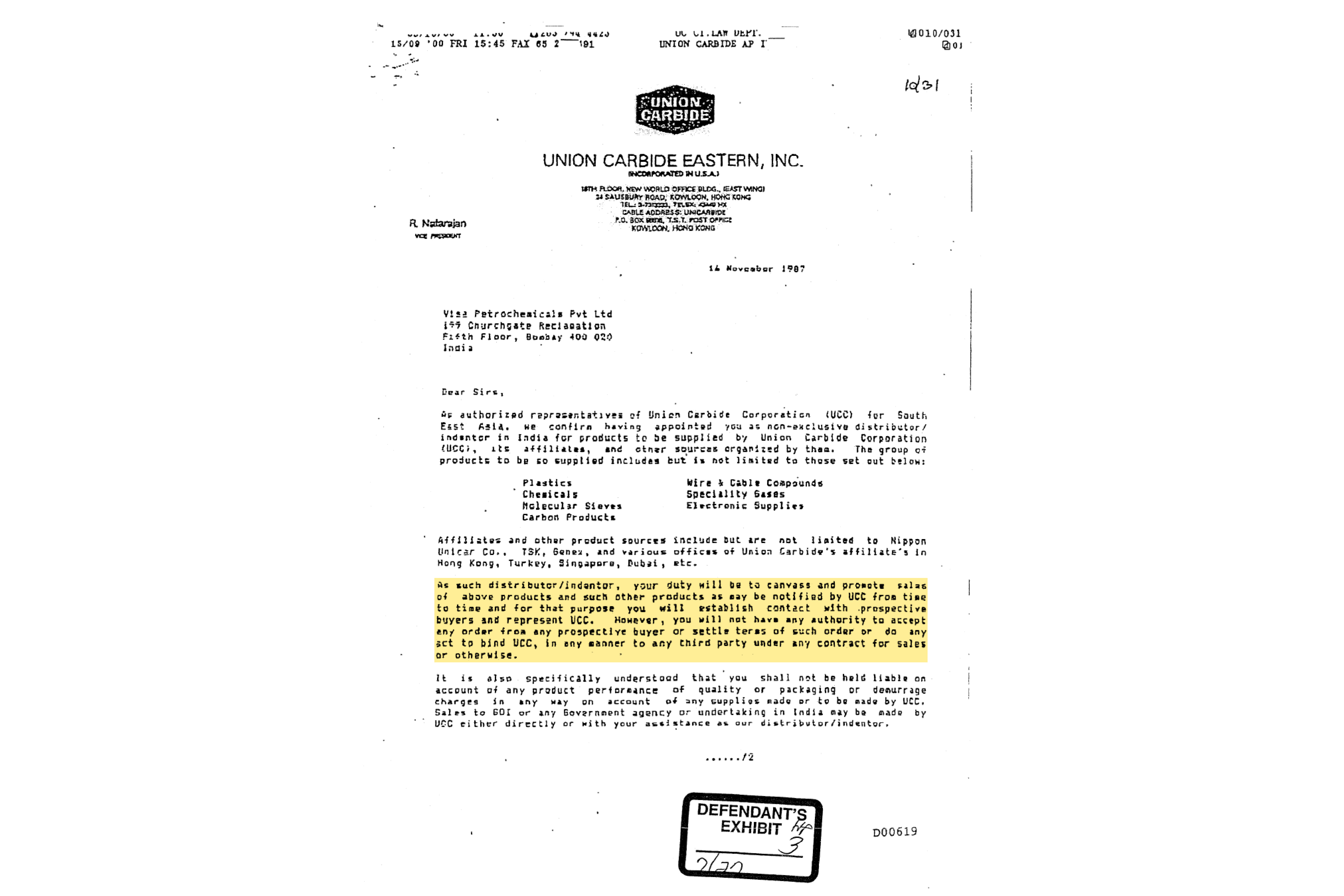 UCC signed an agreement with Visa Petrochemical on 14 November 1987, 15 days before the CBI filed charges against the former, and designated the new company its “non-exclusive distributor in India”. The arrangement allowed UCC to route its products through Visa. Under the contract, Visa’s “duty” was to “canvas and promote sales” of UCC products. It was to do all this while “representing” UCC. The latter’s business could now proceed without the taint of its past.