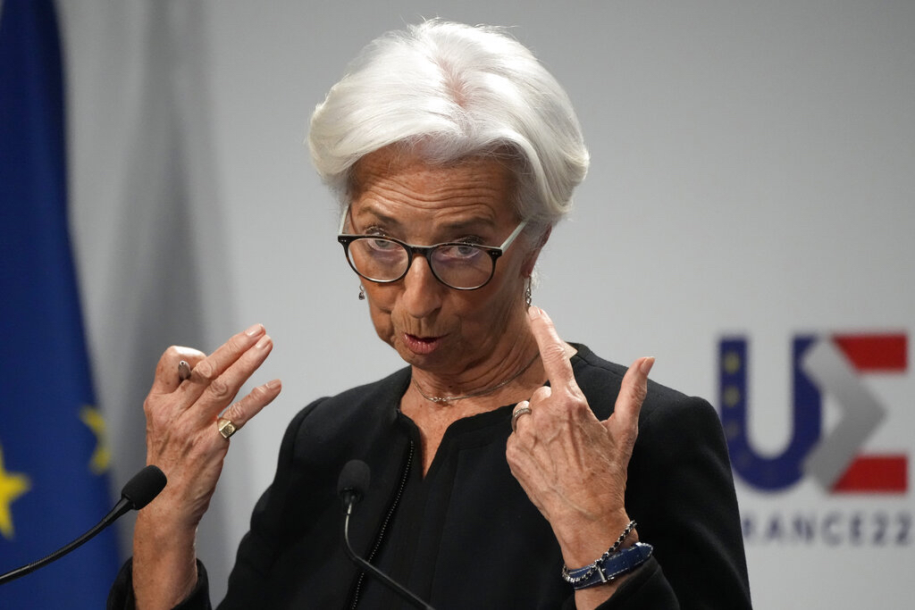 The bank was keeping its options open and could modify its stimulus exit depending on what happens with the economy, President Christine Lagarde said. That is hard to answer right now because of huge uncertainty over the effect of the war.