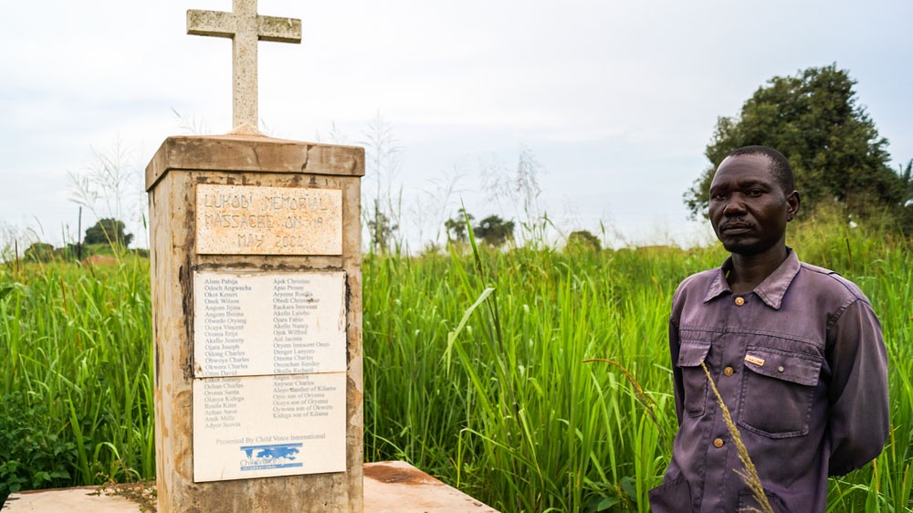 “Nothing will replace the lost lives. However, the government of Uganda should come up with a programme of compensating the local people for the property that they have lost and for the relatives that they have lost. It would never be equivalent, but at least people would feel comfortable and become a sense of justice being delivered for them,” says Kennedy Caymoi, who lost many relatives during the attack and is now taking care of a memorial in Lukodi village.