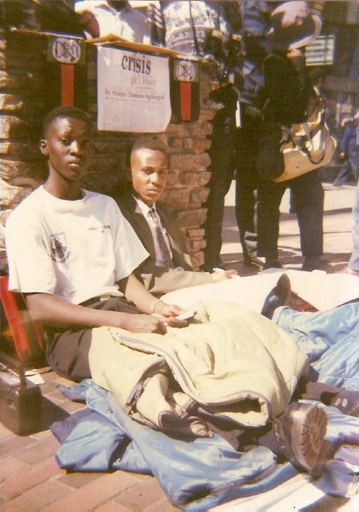 Despite being arrested in 1993, McGown still had not been convicted nearly two years later. Lance had been following the case and met with the parents of Lavender Khaminwa. Soon after, Lance, Warlord and another student activist, Pedzisai Ruhanya, decided to go on hunger strike. Joining protesting crowds at the trial, the three students sat outside the courtroom, where they refused to eat or drink for five days. Worried for his health, Lance’s parents drove the six hours from their home in Bulawayo to try to convince him to stop, but he refused.