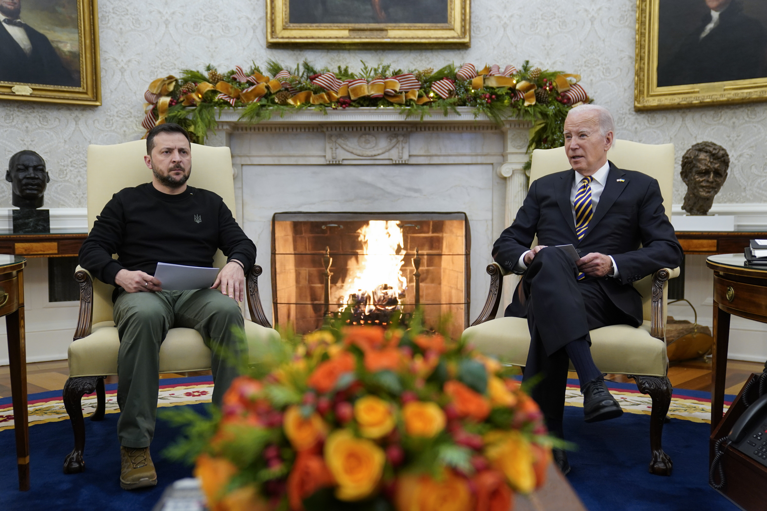 And when asked about what awaits her and all of Ukraine in 2024, the ginger-haired, petite mother of two pointed up, as if her manicured forefinger could pierce the ceiling towards the grey sky and howling sirens, and said: “A lot more of this.”