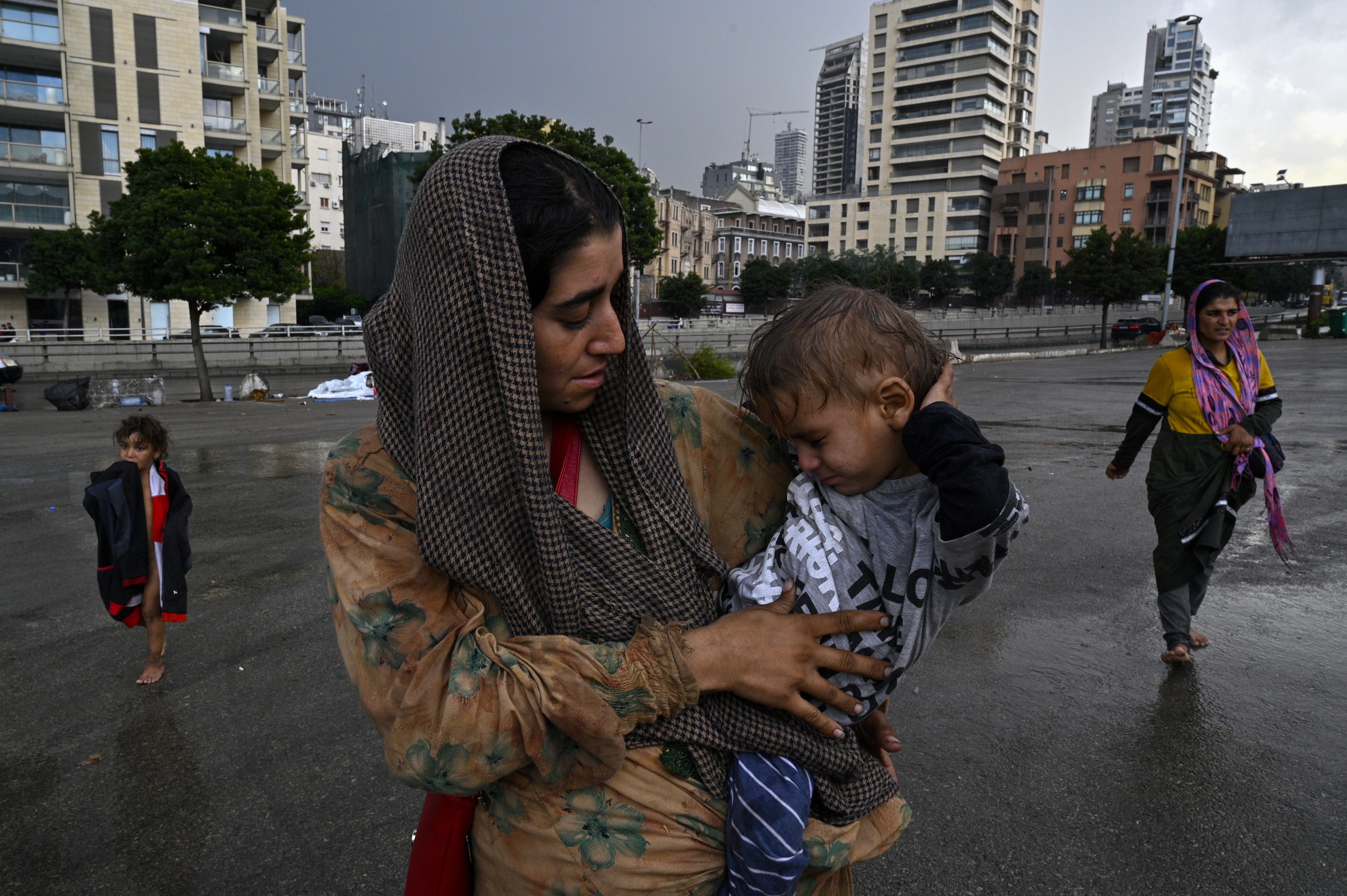 The people were displaced, having pitched their tents there after fleeing the Israeli bombing of their homes in the district of Dahiyeh in Beirut’s southern suburbs.