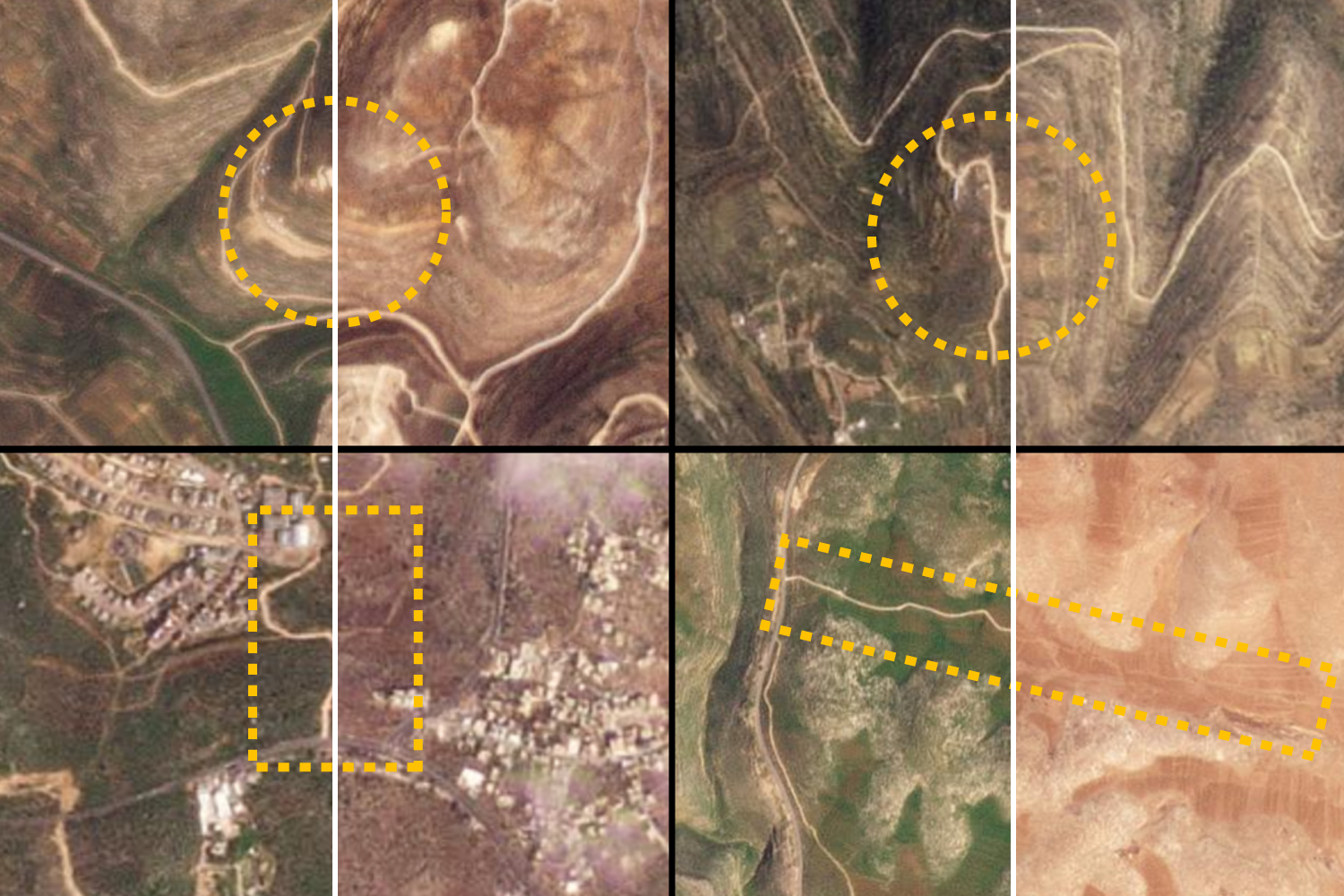 The verified satellite images below show dozens of new roads built after October 7 linking outposts to other Israeli-controlled areas, such as farms or settlements.