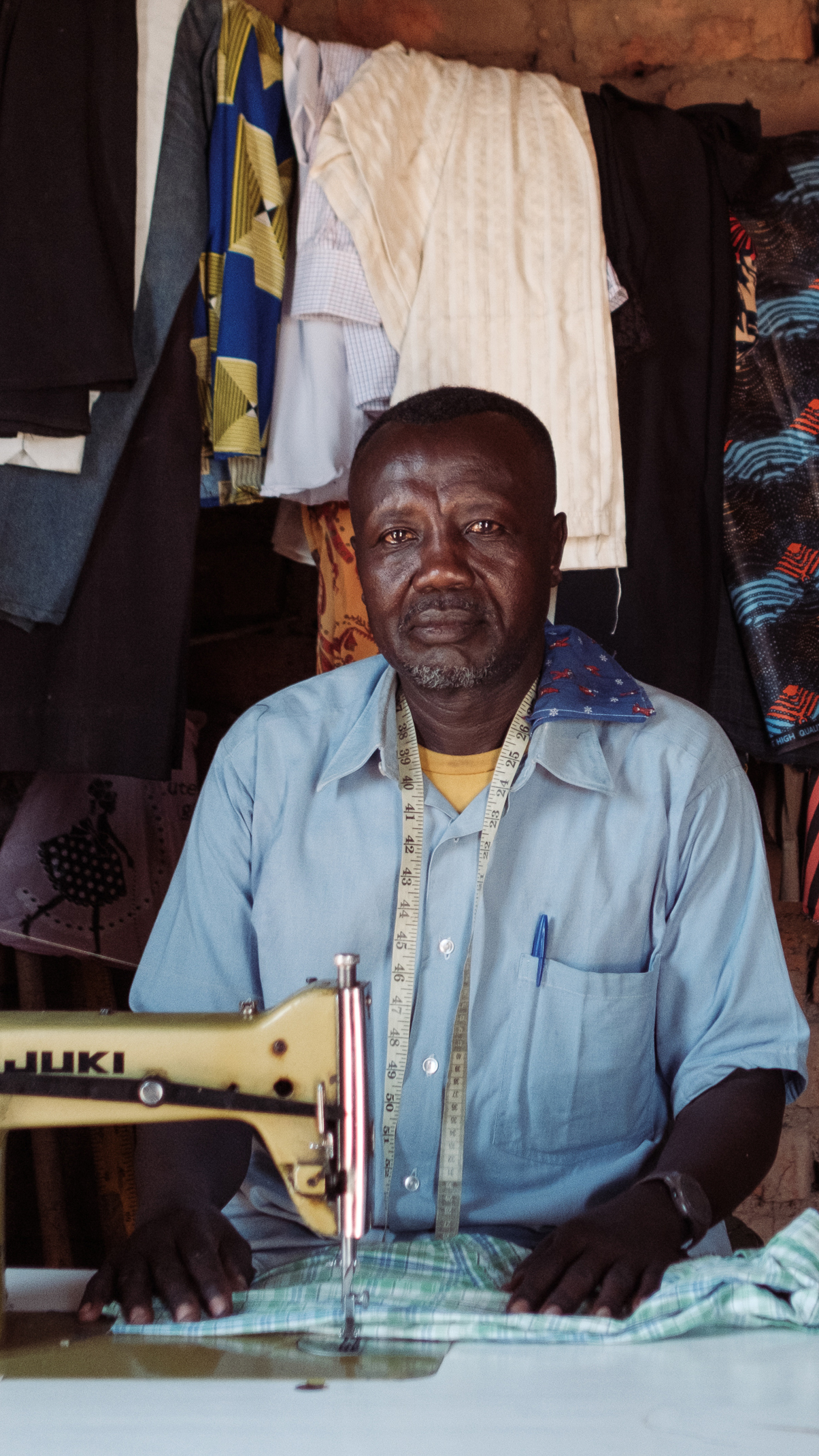 Across the road, 53-year-old tailor Ousman Nur Said works, surrounded by fabric hanging around him. Amid the colours, the green, brown, and sand-coloured camouflage cloth scattered around his shop is a reminder of the military uniforms he’s been asked to make.