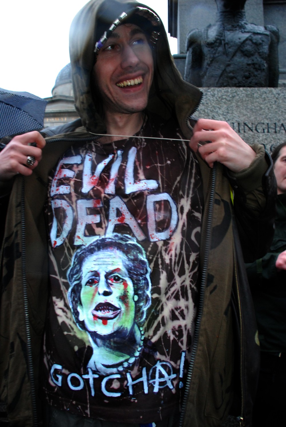 London, United Kingdom – Anarchist group Class War has, for decades now, been circulating the idea that, on the first Saturday after the death of former British Prime Minister Margaret Thatcher, those opposed to her divisive leadership should head for London’s Trafalgar Square to celebrate her demise.