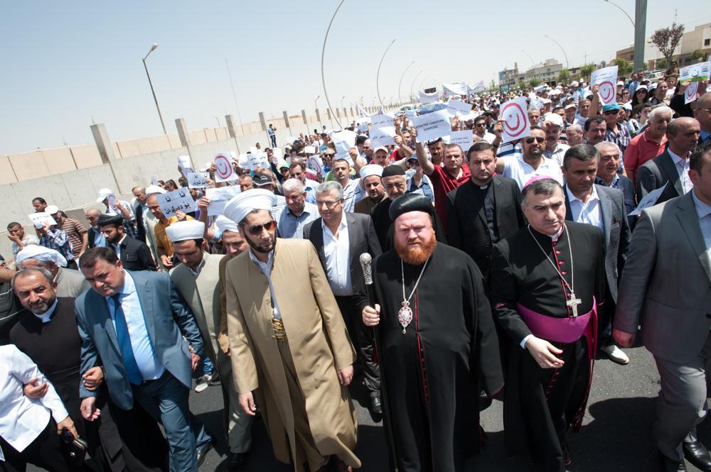 As in other recent demonstrations in Baghdad, Christians weren’t the only ones marching in Erbil. Leaders of the Muslim community walked side by side with Christian clergy to demand an end to the violence engulfing the country. “I am a Muslim living in Iraq,” says Suras al-Munai, a resident of Ankawa. “I am here today with my brothers and sisters, the Christian people, to say I am against what is happening in Mosul.”