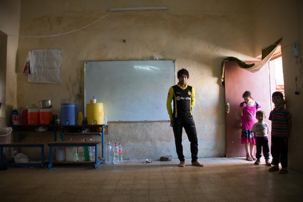 Members of the Hamet family live in a government school classroom in the village of Jarahiyya. Islamic State group fighters have targeted members of the Shia, Shabak, Yazidi, and Christian communities.