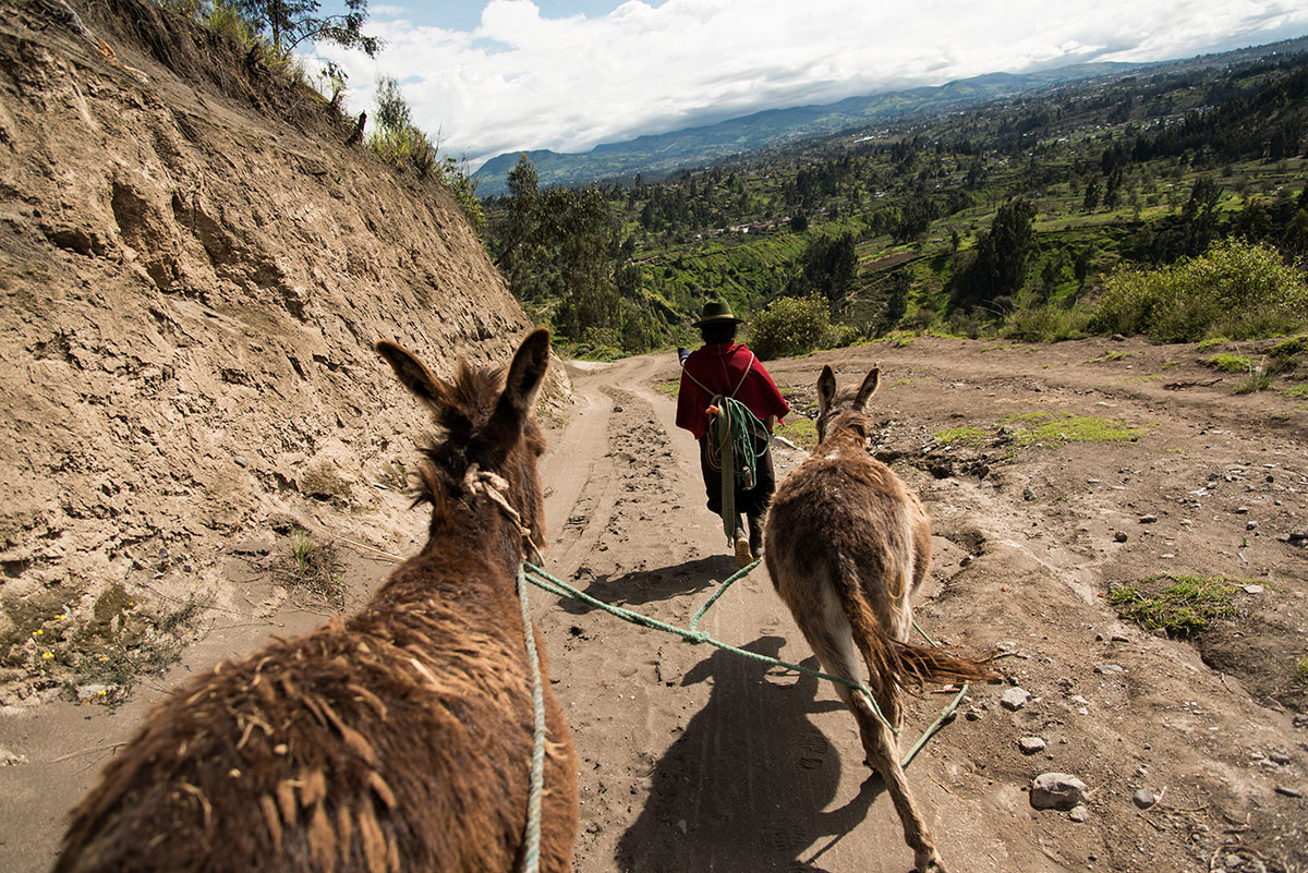 Salasaca, Ecuador – Sisters Martina Masaquiza Sailema and Luz Maria Masaquiza Sailema trot towards the outskirts of Mangiua village in Salasaca district, in the Ecuadorian Andes, exchanging a word in Quichua here and there, thick ropes and sickles dangling from their shoulders.
