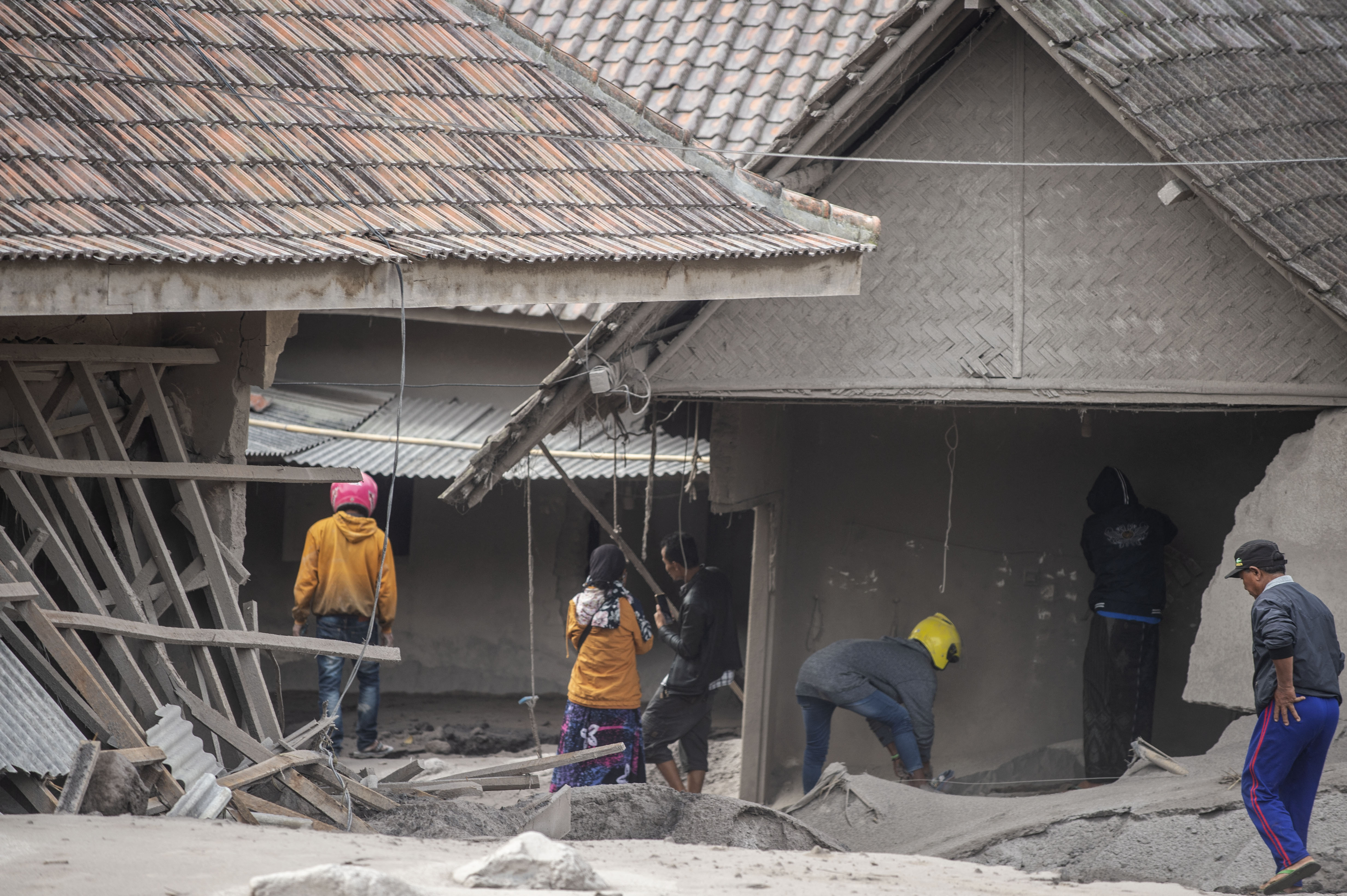 Entire houses in the village were damaged by volcanic debris and more than 900 people fled to temporary government shelters. [Juni Kriswanto/AFP]