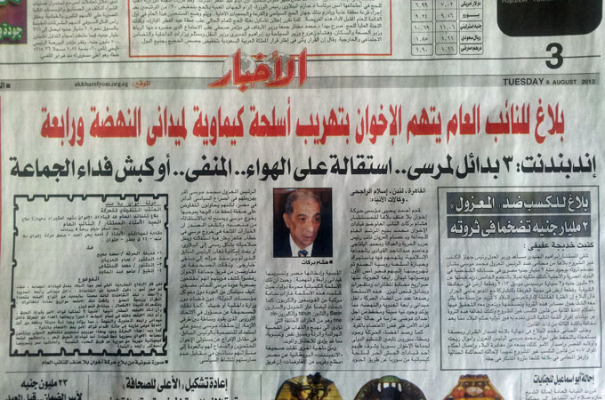 Cairo paper accuses Muslim Brotherhood of smuggling chemical weapons to pro-Morsi sit-ins [D.Parvaz/AlJazeera]