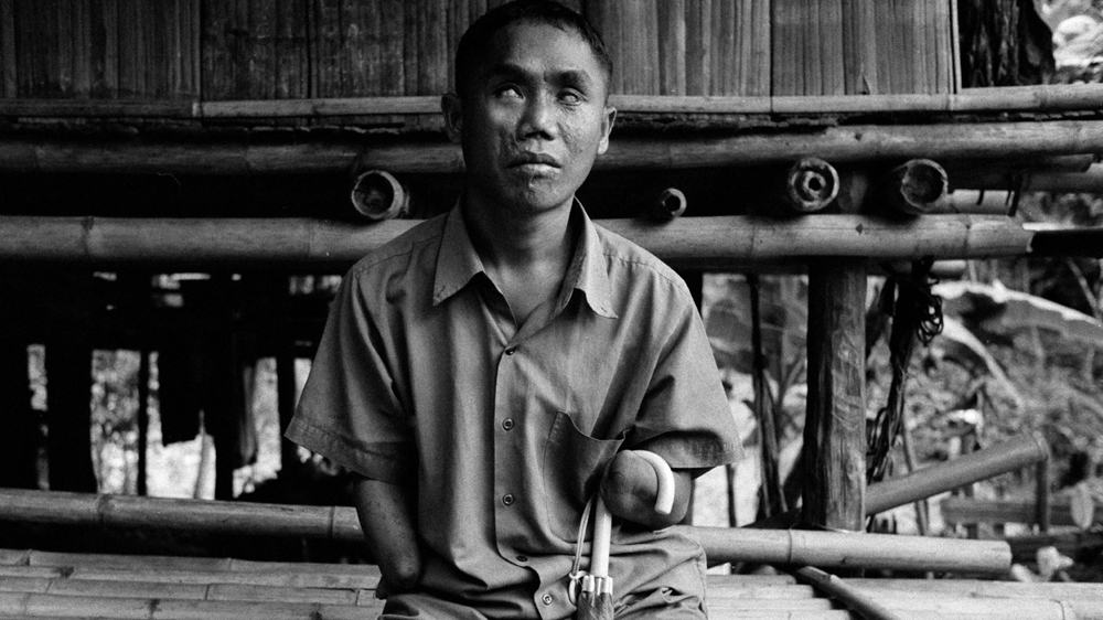 When I met Panyuk he was sitting outside his hut on a seat made of fat tubes of bamboo. Panyuk, a member of the Karen ethnic group from Myanmar, lost both his arms and was blinded in both eyes in a landmine explosion five years ago.