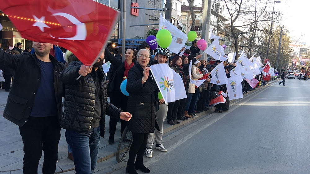 Eighteen-year-old student Enes Arslan told Al Jazeera: “Terrorists (Kurdish separatists), the party that supports them (HDP) and the EU are Turkey’s foes and they are against the presidential system. That’s enough reason to vote for the changes.”