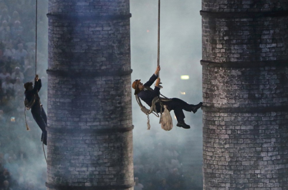 Three-hour spectacle opens two-week sports festival as crowd of 60,000 people gather in London’s Olympic stadium.