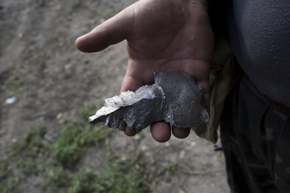 Pavel, a young rebel guarding the MH17 crash site, examines the plane wreckage. The rebels have been accused of downing the passenger plane, tampering with the crash site, and delaying the collection of the bodies of passengers. Heavy fighting is now raging around the crash site as the Ukrainian army fights for control of it.