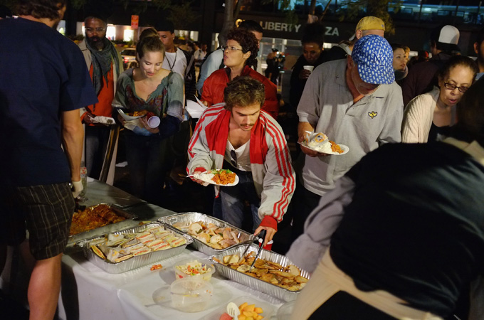 Bingo: in one swoop, OWS created a well-functioning ethical economy that included a market dynamic, but that also functioned in harmony with the value system of the occupiers. What is crucial here is that it was the citizens who decided on the most appropriate provisioning system – and not the property and money owners in an economy divorced from ethical values.