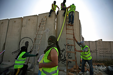 Last Friday, Palestinian youths almost toppled a segment of wall using a hydraulic car-jack in the West Bank village of Nilin.