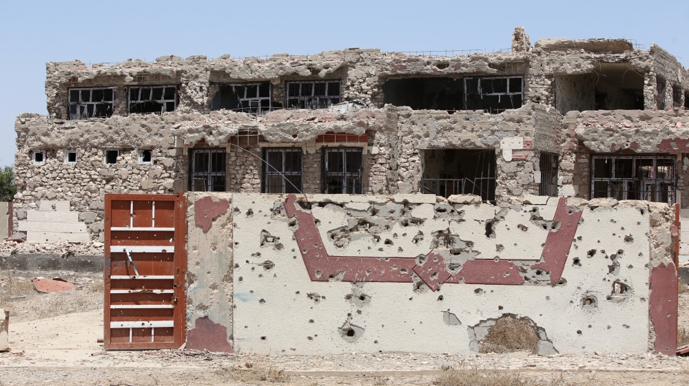 A bullet riddled school which was used as a base for ISIL is seen in the Garma district of Anbar province [AFP]