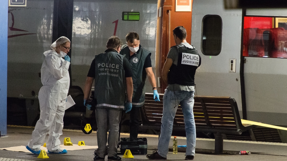 Witnesses say he opened fire, injuring a man before being wrestled to the floor by two US servicemen and tied up with the help of two other men, a British national and another American until the train stopped in the northern French city of Arras where he was taken into police custody.