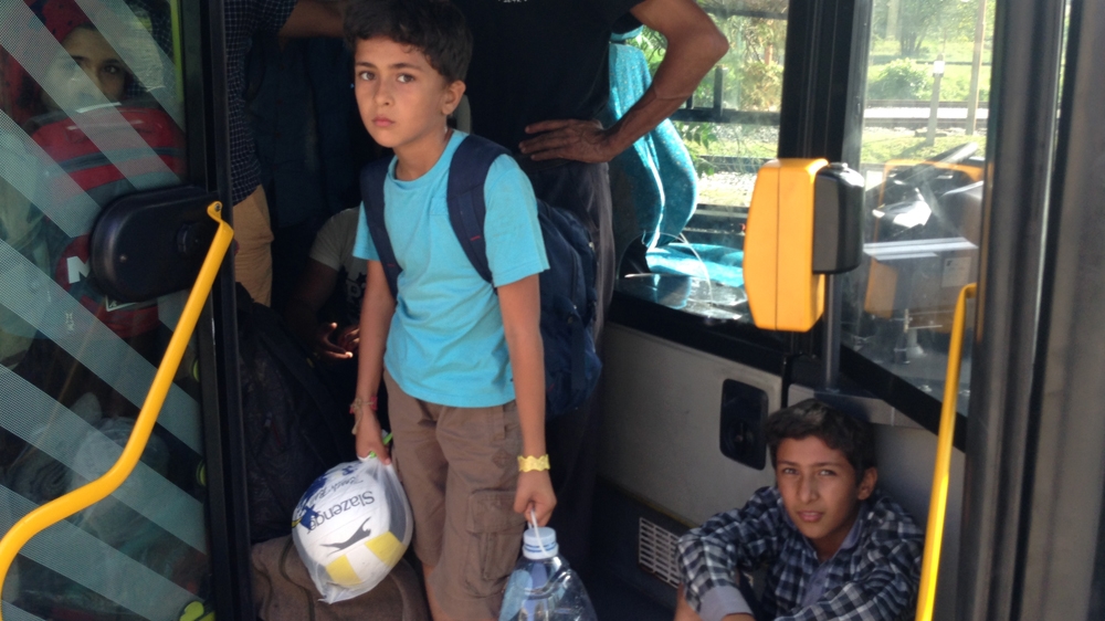 Refugee children board a bus in the Croatian capital, Zagreb [Mohammed Jamjoom/Al Jazeera]