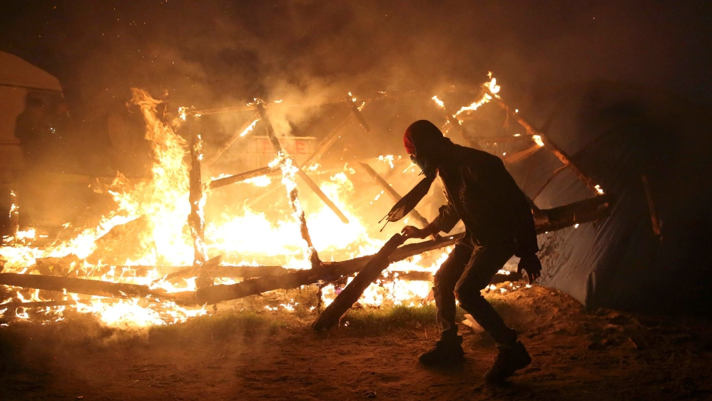 Al Jazeera’s David Chater, reporting from Calais, said the refugees were forced to fend for themselves as “blazes were lit inside the Jungle Camp in a dangerous display of defiance”.