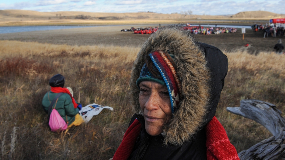 “They’re saying this is their land and they will stay on this land, that they have a right to it because there are burial rights here… There’s about 8,000 people here, staying in tents, teepees and also wooden structures,” Al Jazeera’s John Holman said, reporting from the Oceti Sakowin camp.