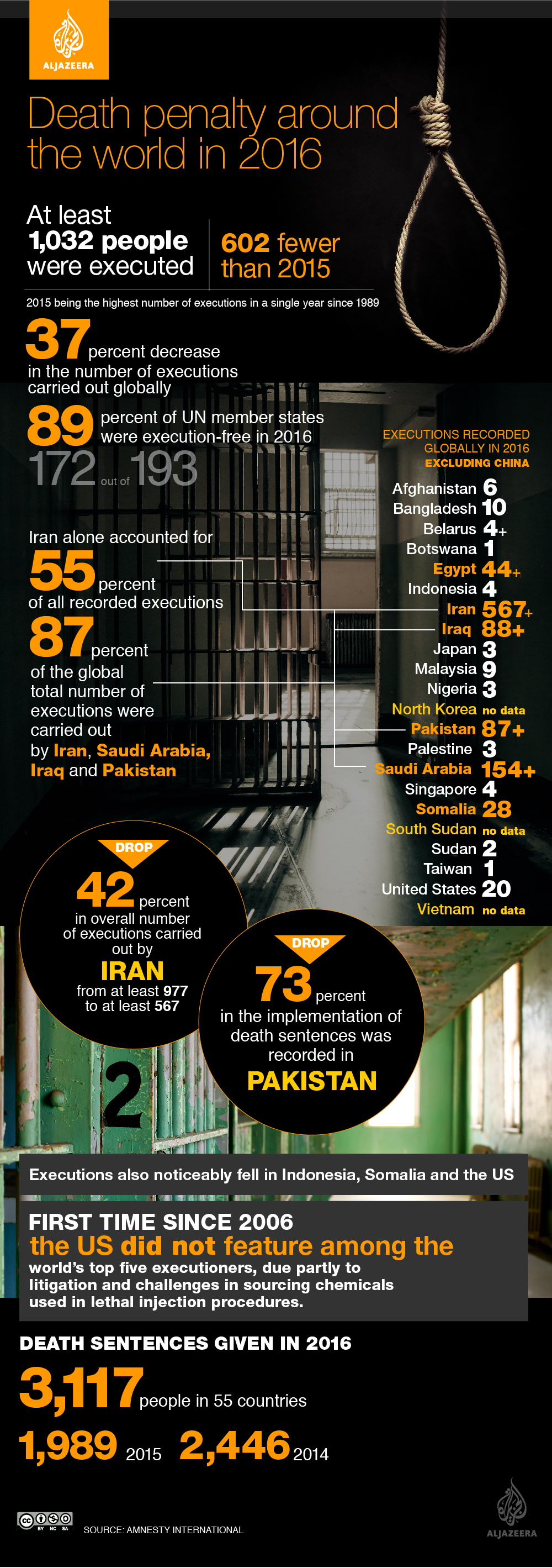Meanwhile, the US reached a historic low in its use of the death penalty in 2016.