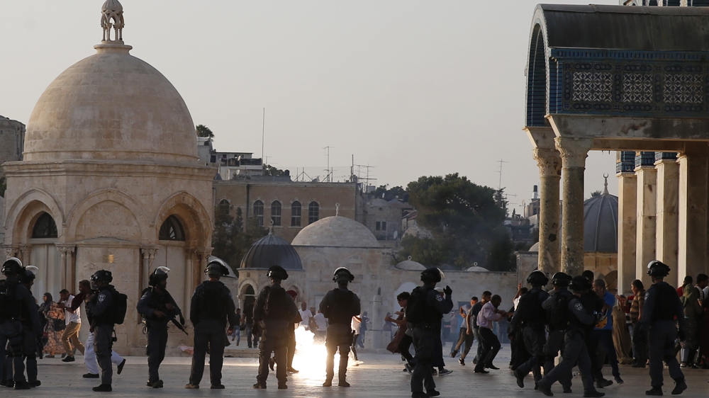 ![Palestinians and Israeli border police officers clash inside the compound [Mahmoud Illean/AP Photo]](https://aljazeeranews-3fuh52rgrl.edgeone.app/wp-content/uploads/2017/07/fa9e4cf6e85d4d9d9b71a28a60cc524c_18.jpeg?quality=80)