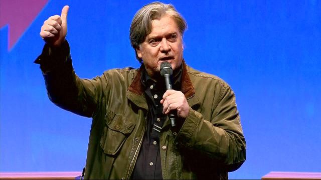 Former top Trump aide has addressed the party conference of a National Front that is seeking to bounce back from electoral setbacks.