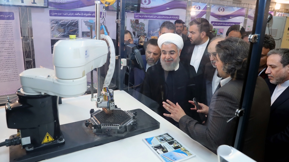 President Rouhani says Iran’s nuclear industry is advancing, but vows to stick with the 2015 deal with world powers.