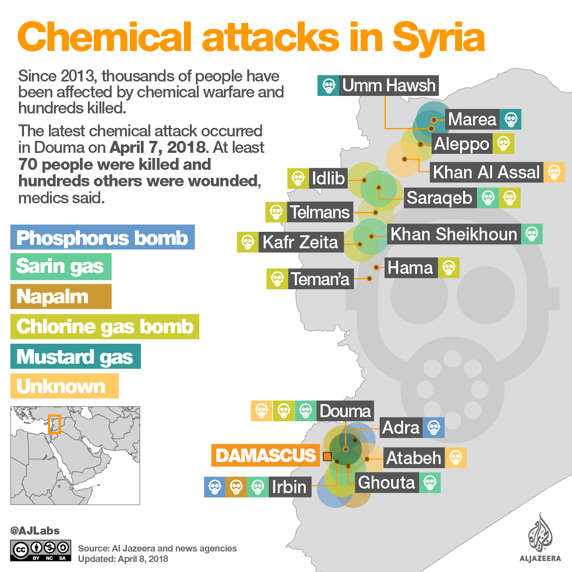 “Seventy people suffocated to death and hundreds are still suffocating,” Raed al-Saleh, head of the White Helmets, told Al Jazeera, adding that the death toll was expected to rise as many people were in critical condition.