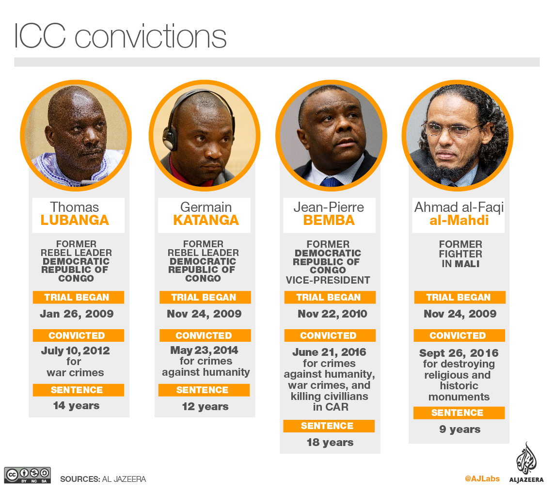 Bemba was sentenced to 18 years in prison in June 2016 for alleged crimes, including murder and rape, in what was described as a landmark ruling after a five-year trial.