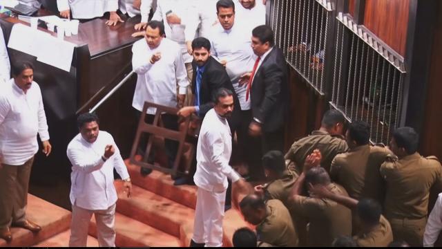 Tempers flared as the appointed prime minister, Mahinda Rajapaksa, failed to get the backing of Parliament this week, with Rajapaksa supporters throwing furniture and even a copy of the Constitution at the speaker.