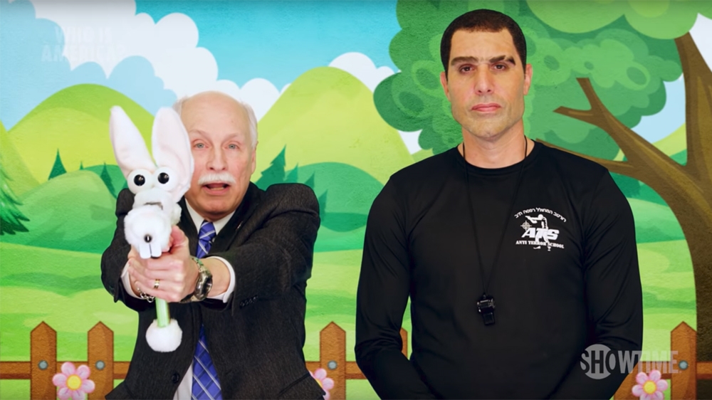 One of the Republican politicians on the comedy series, ‘Who is America?’, later said he was against arming of children.