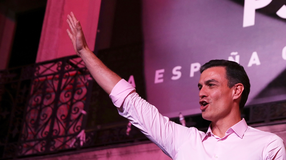 Madrid, Spain – The governing Spanish Socialist Workers’ Party (PSOE) has won the country’s general election with 123 seats after 99.9 percent of the votes were counted.