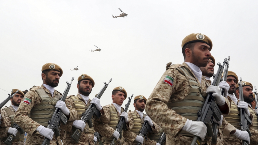 Iranian troops march during a parade marking National Army Day on April 18 [File: Iranian Presidency Office via AP]