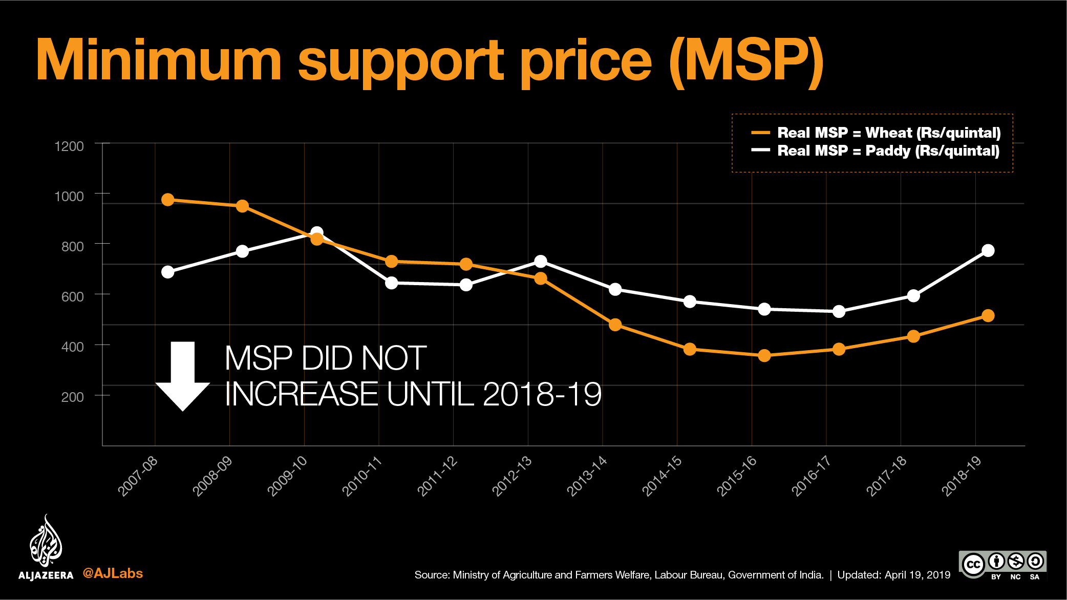The BJP has been accused of reneging on its promise to farmers. The Minimum Support Price (MSP) – the price at which the government buys from the farmer – was stagnant for the first four years. The MSP is the government’s main instrument to ensure price stability by setting a floor price in the market.