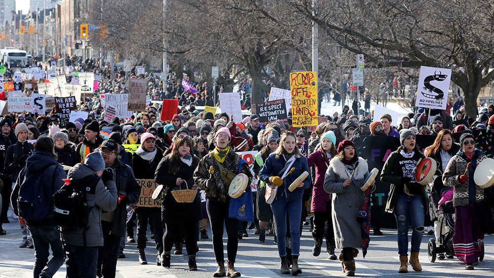 For weeks, protesters have taken to the streets, railways and ports, paralysing parts of the country’s transportation sector, to stand in solidarity with Wet’suwet’en land defenders, who are fighting to stop the construction of a pipeline on their traditional territories in northern British Columbia (BC). Wet’suwet’en hereditary chiefs, who hold authority over their land, say they were not properly consulted on the 670km (416-mile) Coastal GasLink pipeline. The company says it reached agreements with 20 elected First Nations band councils. In December, the BC Supreme Court granted Coastal GasLink an injunction to continue work on the pipeline.