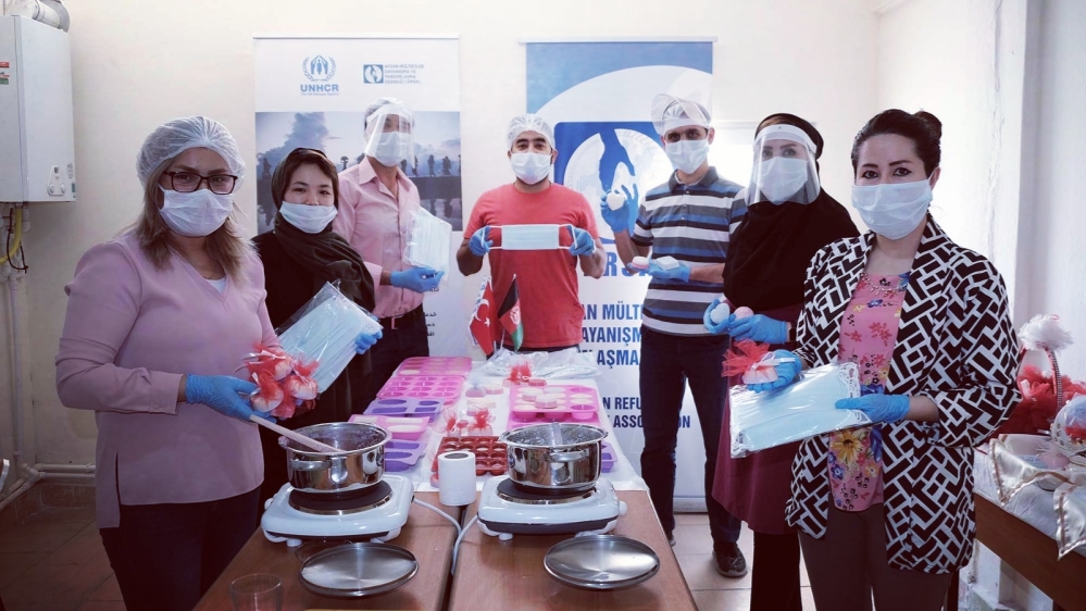 UNHCR initiative sees Afghans in Kayseri produce 1,000 face masks a day and soap to aid hospitals and local community.