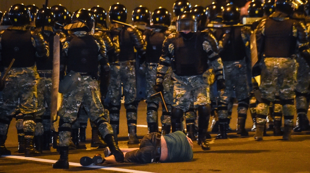 Police beat protesters as exit poll gives President Lukashenko 79.7 percent, with rival Tikhanovskaya at 6.8 percent.