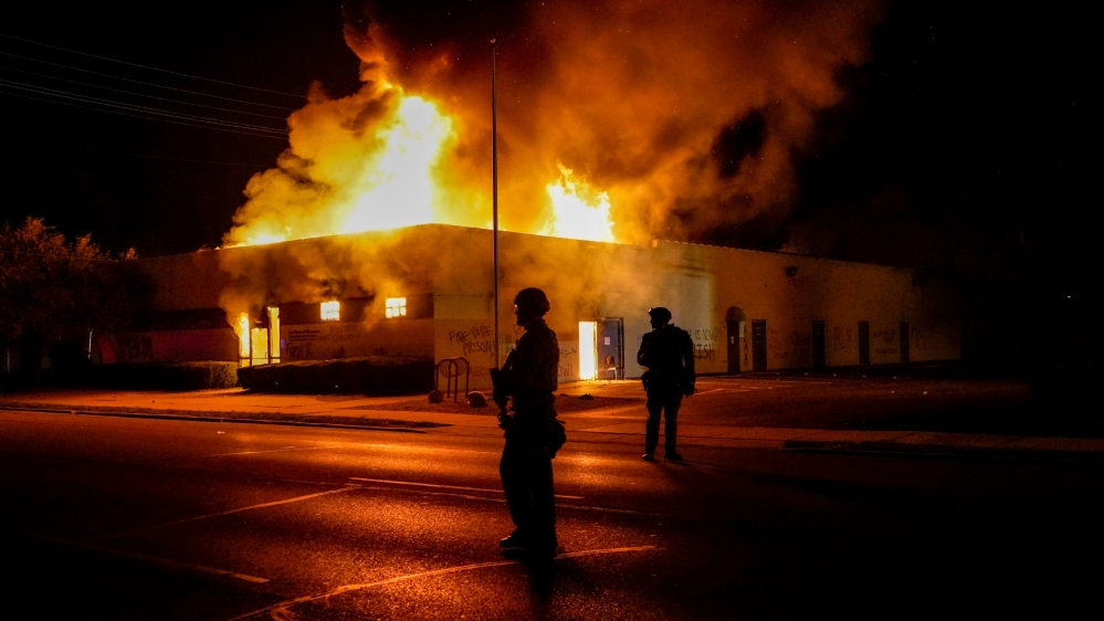 Protesters set fire to cars, buildings as National Guard deploys to quell unrest over police shooting of a Black man.