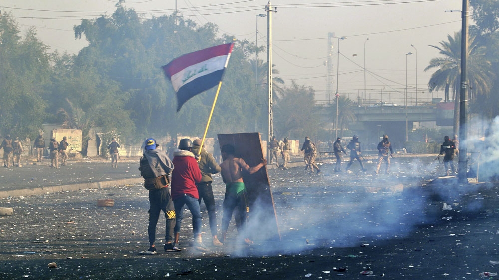 The Iraqi government did not confirm the deaths. Al Jazeera’s Osama Bin Javaid, reporting from the Baghdad demonstration, said activists took video showing seriously wounded protesters being carried away after the fierce clashes.