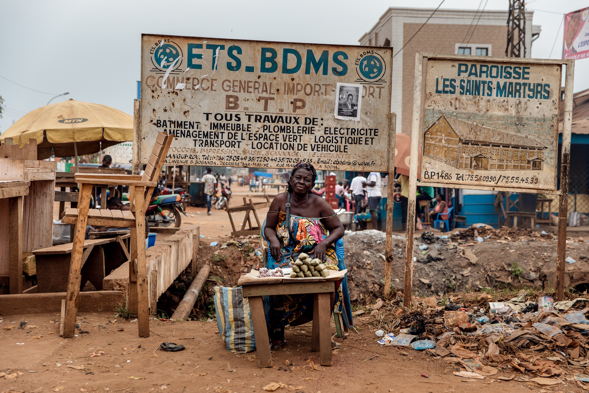 Yvonne Vola is a mother of nine and has three grandchildren. She sells peanuts and cassava on a roadside in Bangui.